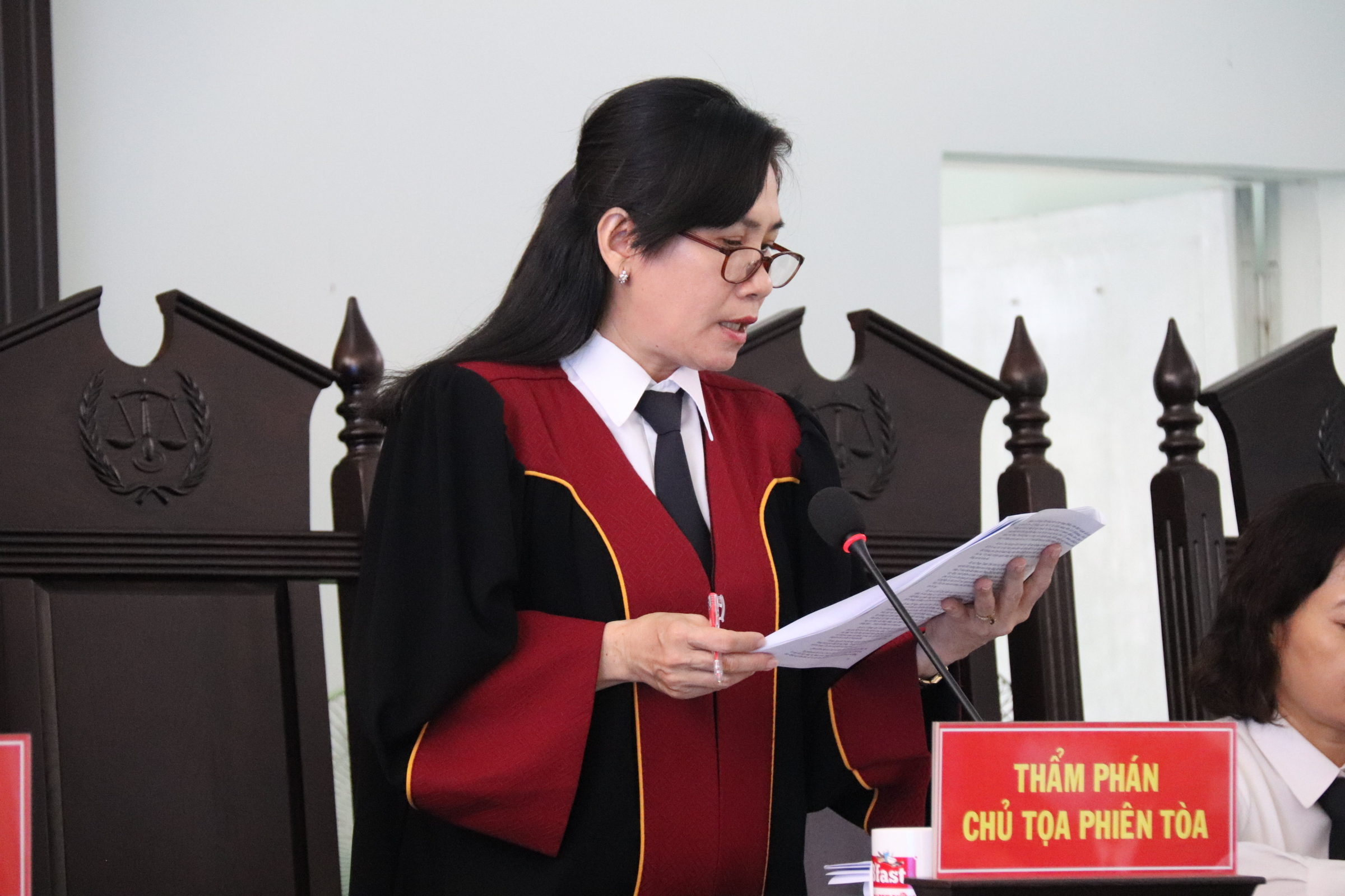 Thẩm phán, chủ tọa phiên tòa đang đọc bản tuyên án các bị cáo